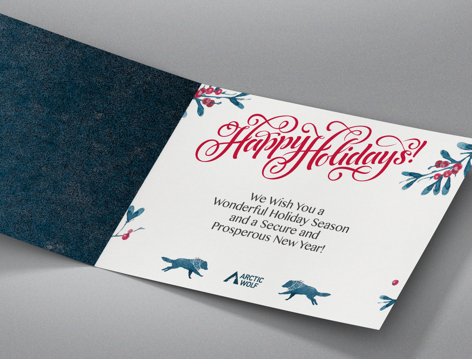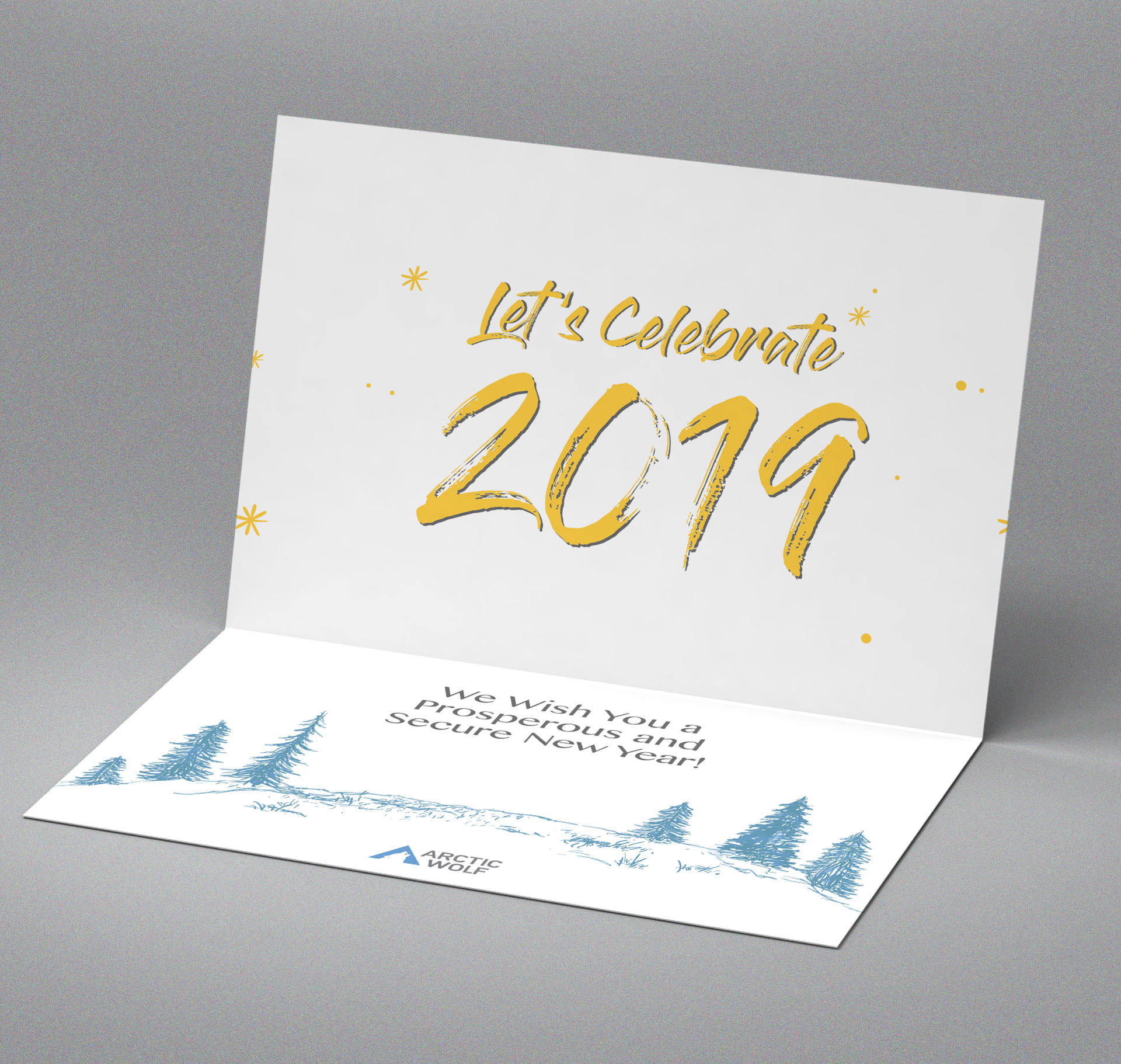 Arctic Wolf Networks wanted a fun take on holiday cards that took an artistic approach to the brand. Below are two designs created for Christmas and New Years that sales reps would mail to customers and potential customers with a personal note.